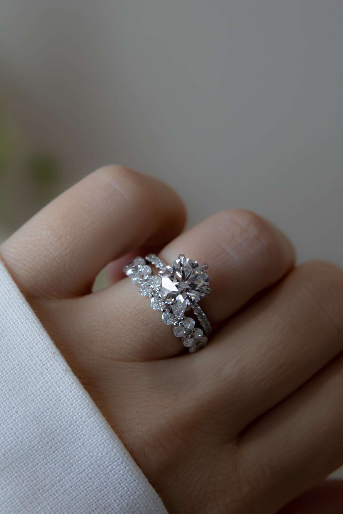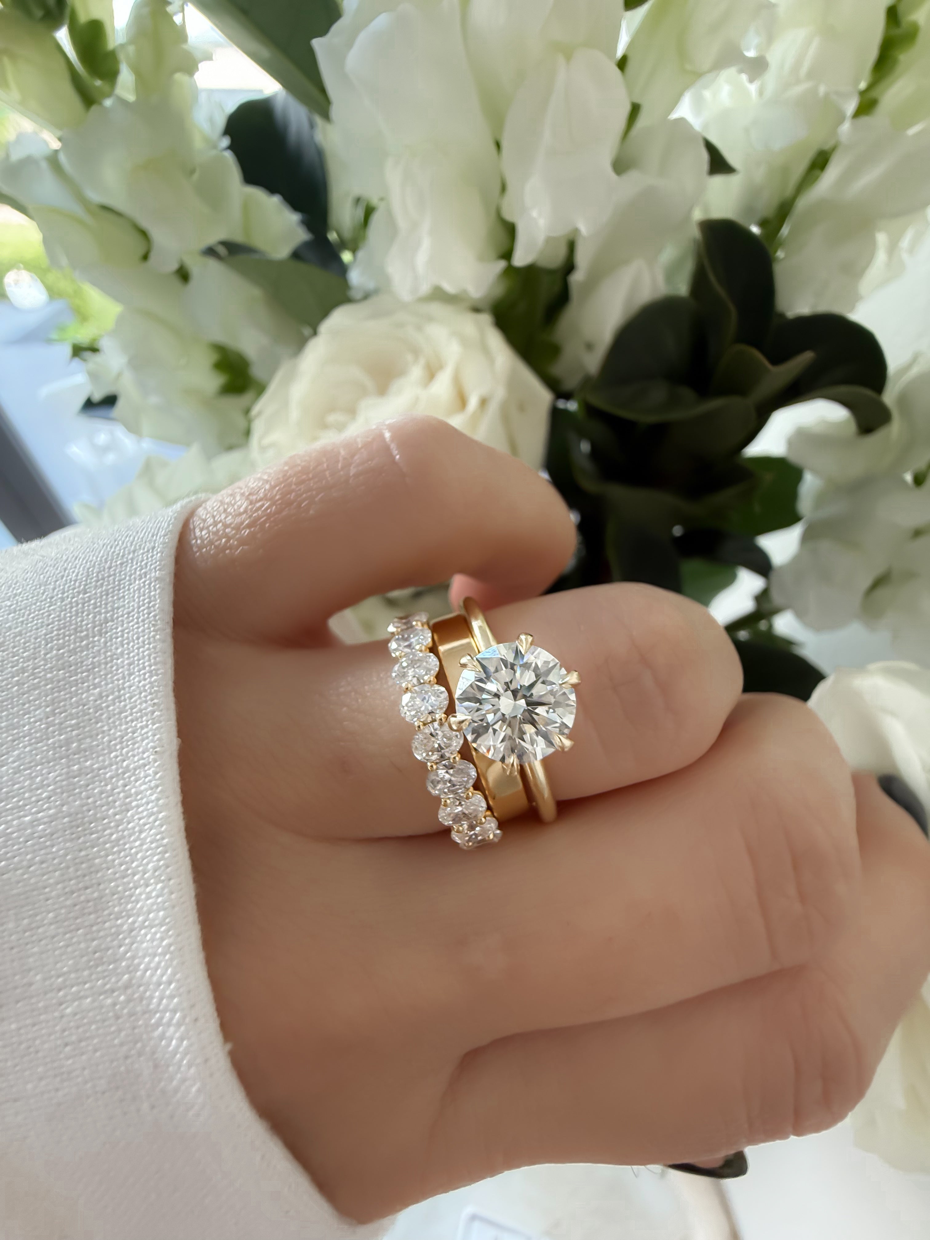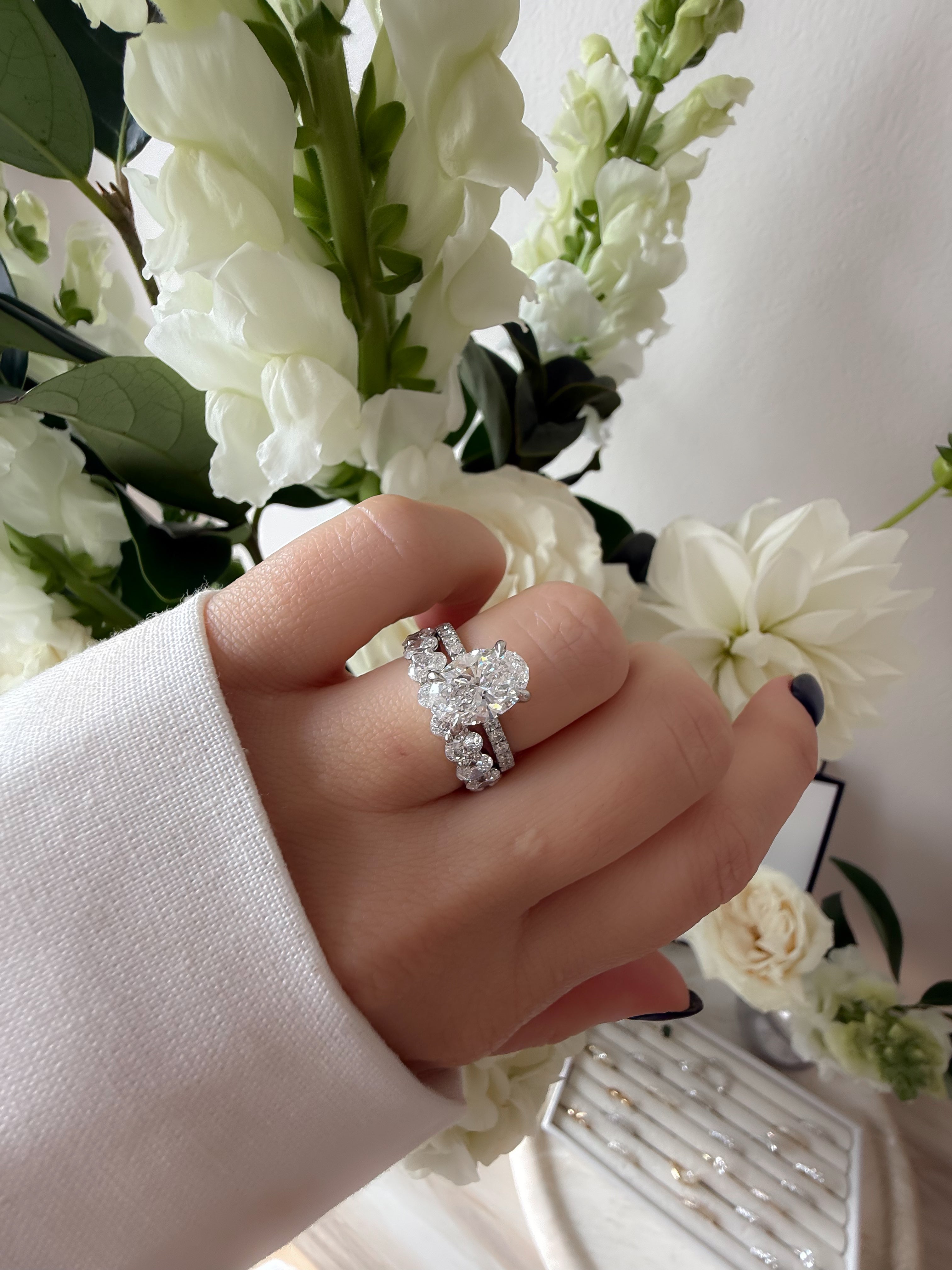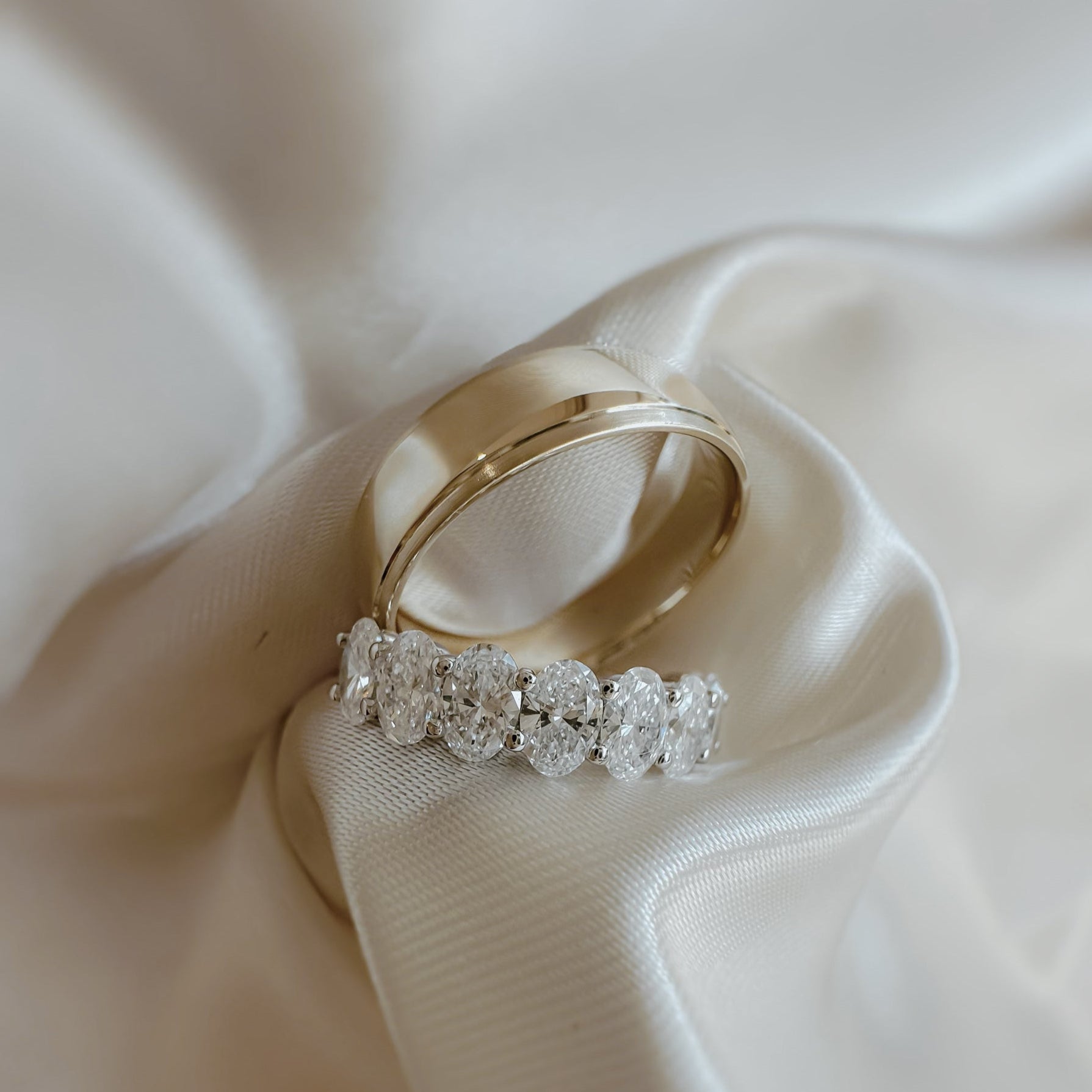 Ethically sourced oval-cut diamonds (Available in mined diamond options) ½ way around the band
