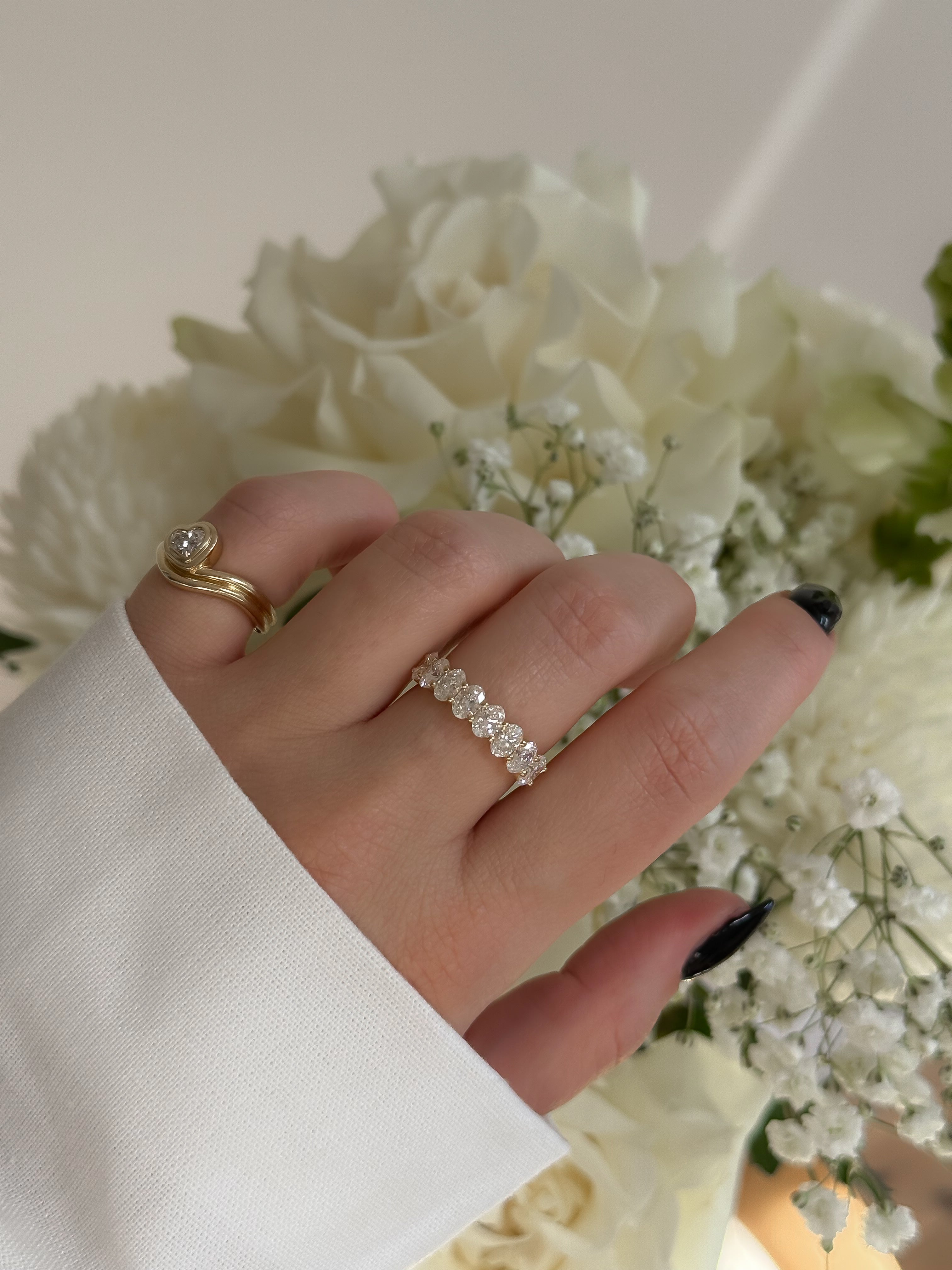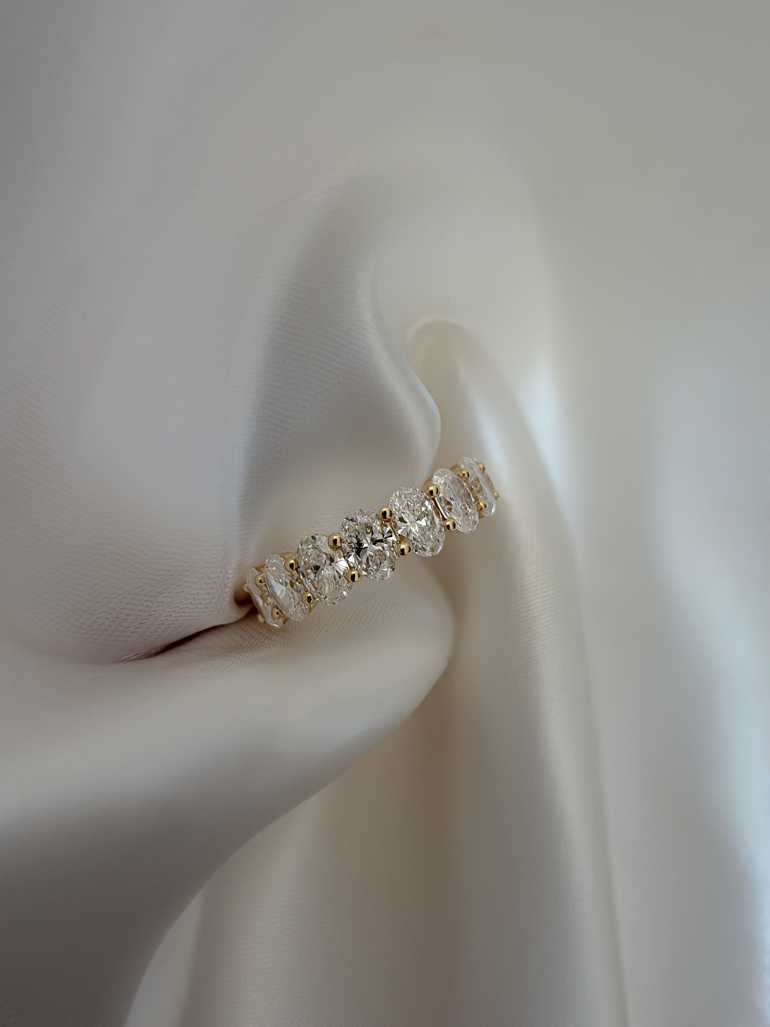Graceful, radiant and effortlessly timeless—the Acacia Oval Diamond Band is a true statement of refined elegance. Featuring a seamless row of oval-cut diamonds, this band is designed for those who appreciate classic beauty with a modern touch. Whether worn as a wedding band, anniversary piece or a luxurious stacking ring, the Acacia Band embodies sophistication in every detail.