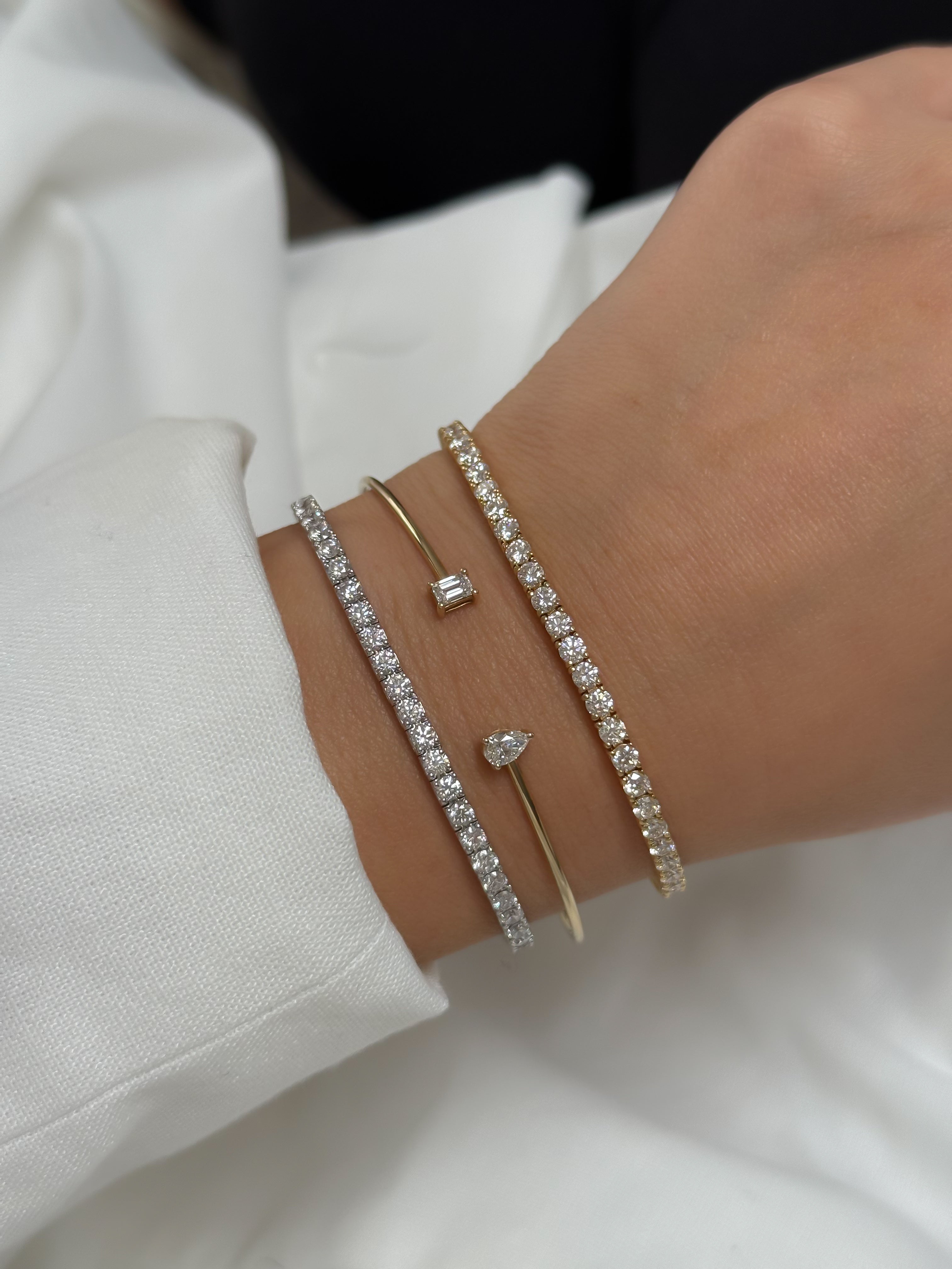 The Classic Tennis Bracelet is the epitome of sophistication and refined luxury. Featuring a seamless row of brilliant-cut diamonds, set to maximise brilliance, this piece is a symbol of timeless beauty. Whether worn alone or stacked, it is a must-have for those who appreciate effortless elegance.