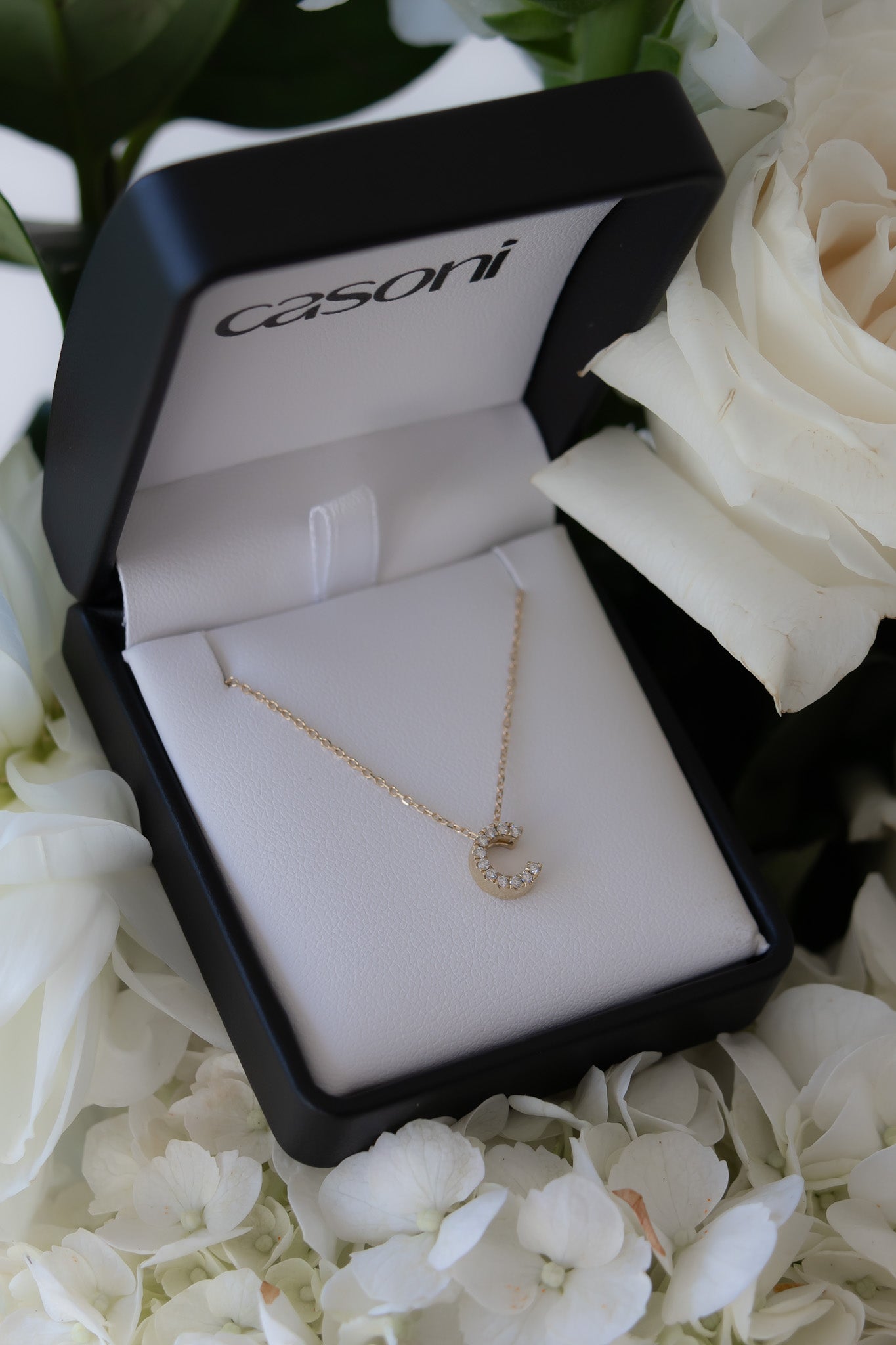 Casoni Love Letters are a timeless and delicate addition to your Capsule Collection. This delicate mined diamond-set initial pendant is crafted in solid 9ct White or Yellow Gold.